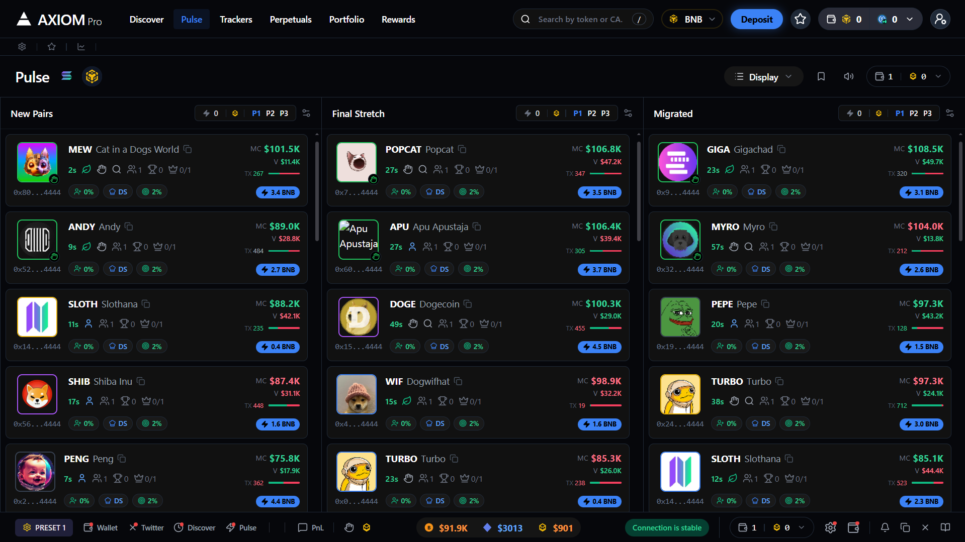 A Next.js-powered crypto-currency dashboard, replicates Axiom Pulse's real-time token discovery UI. Built for traders who need instant market intelligence.