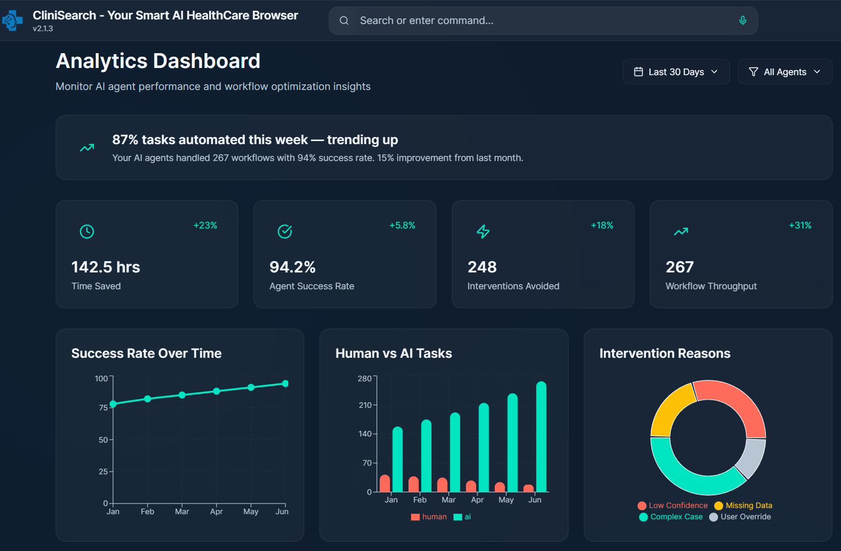 UI design and development for an AI agentic browser, focusing on health-tech and oncology workflows. Liquid glass-inspired theme.